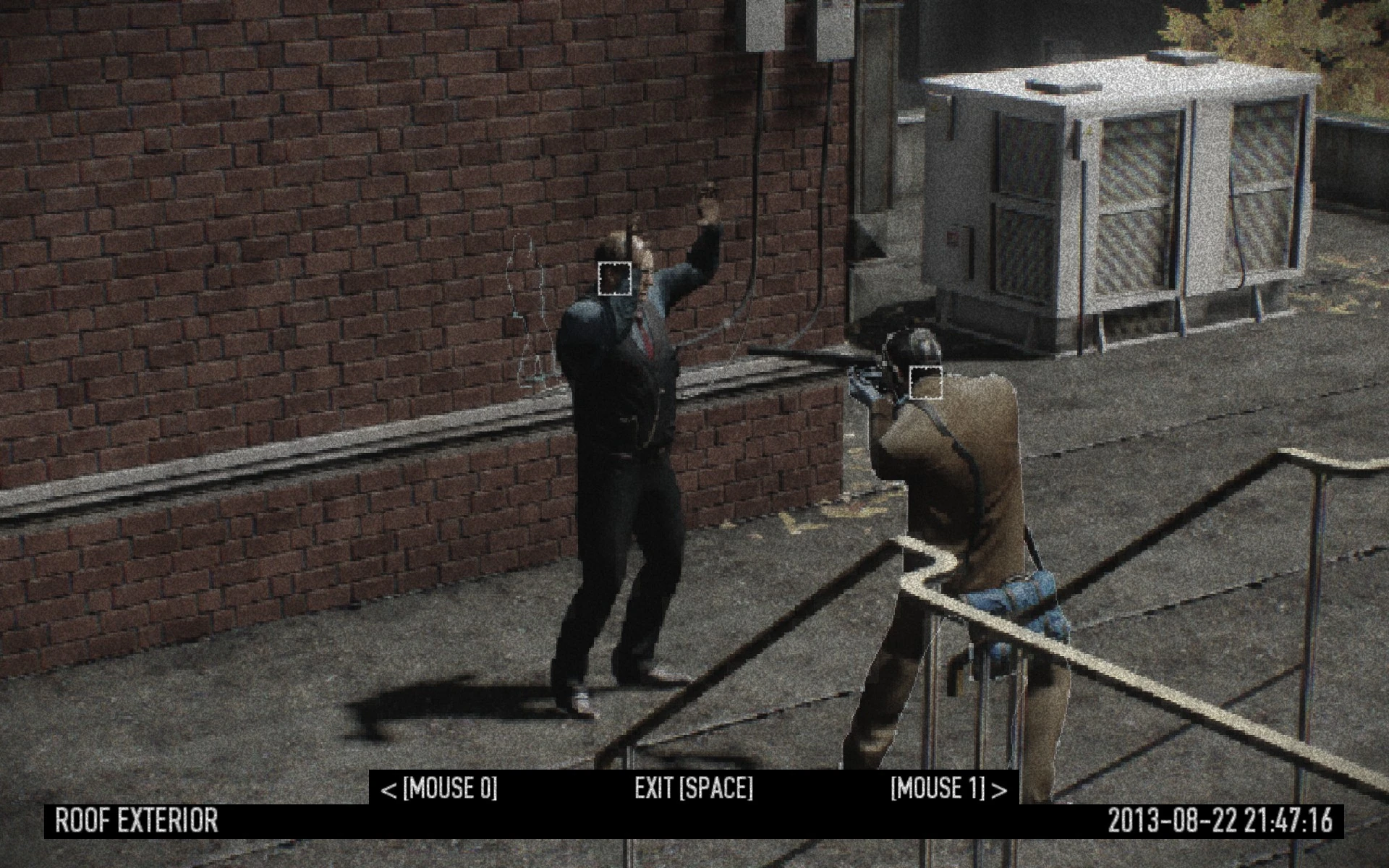 Примечание: Гражданские или охранники, попавшие под объектив Ваших камер, начнут обводиться красным контуром, благодаря чему Вам и Вашим напарникам станет легче определять их местонахождение.