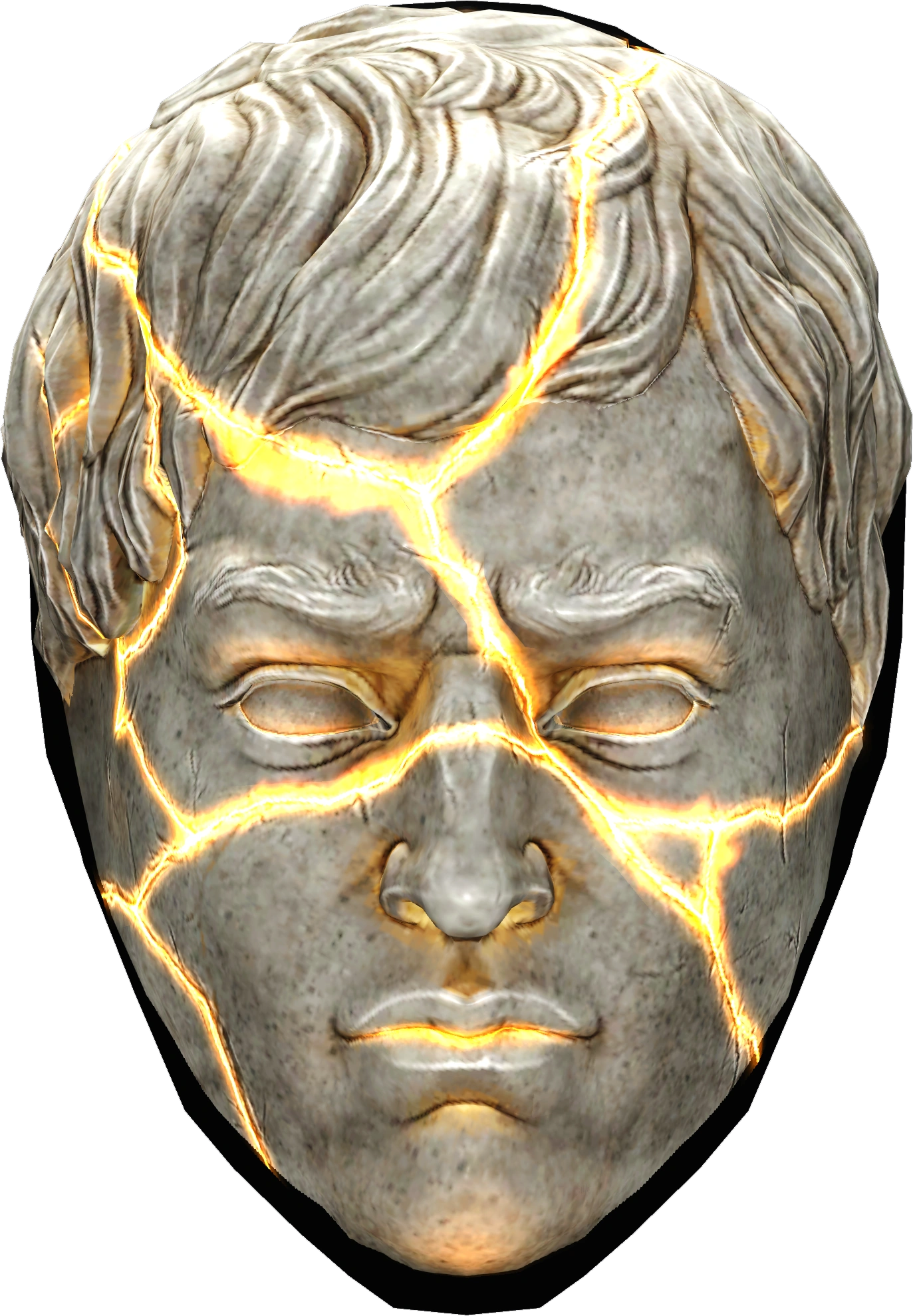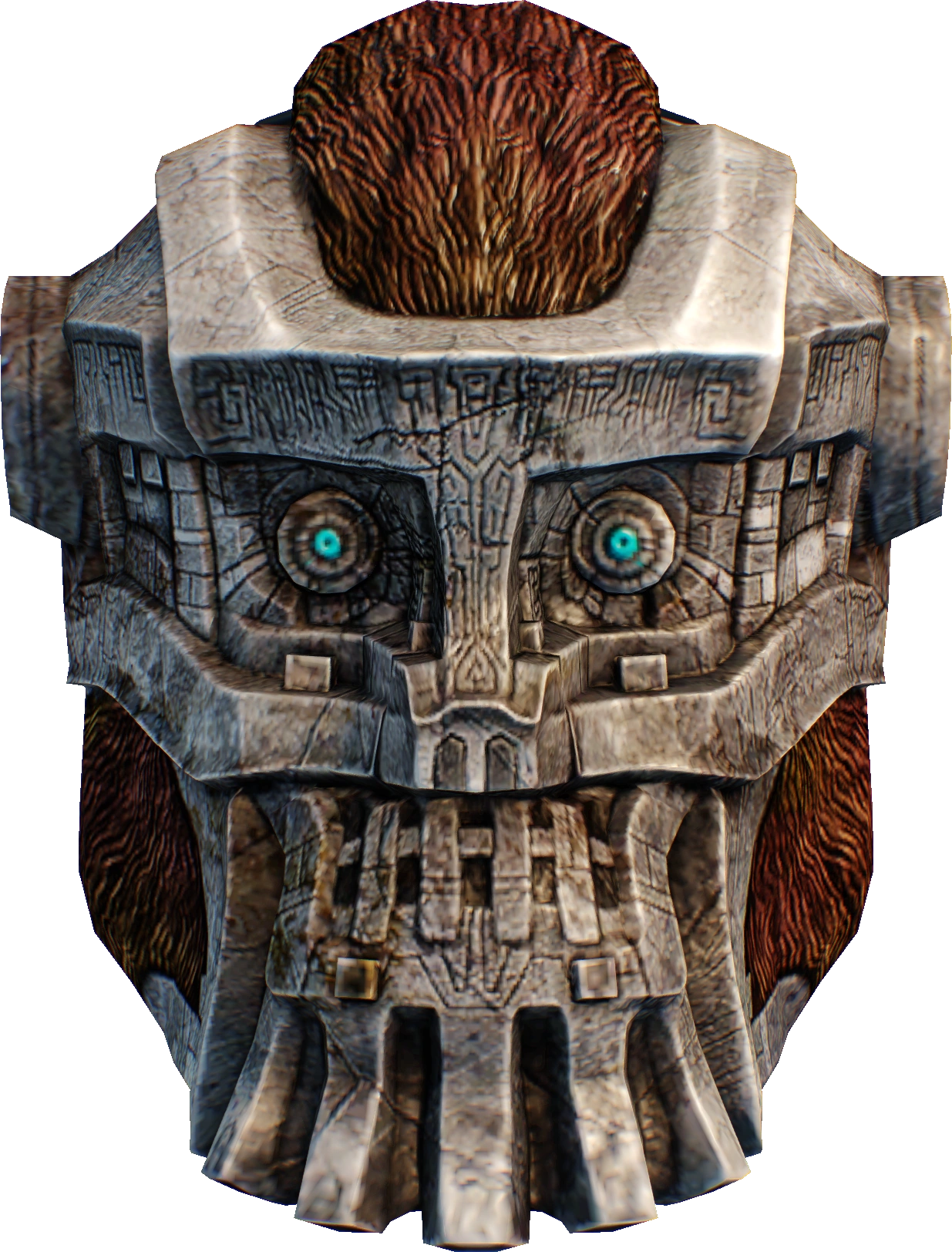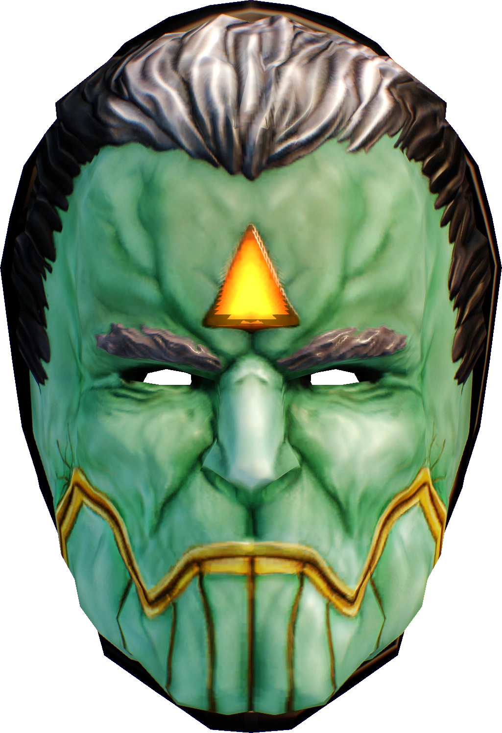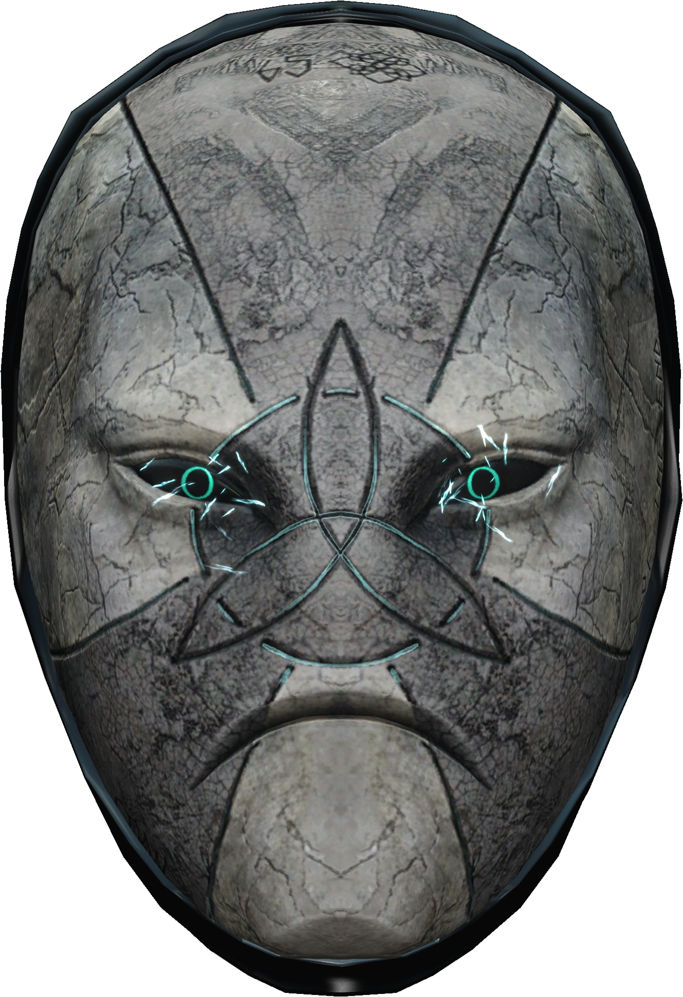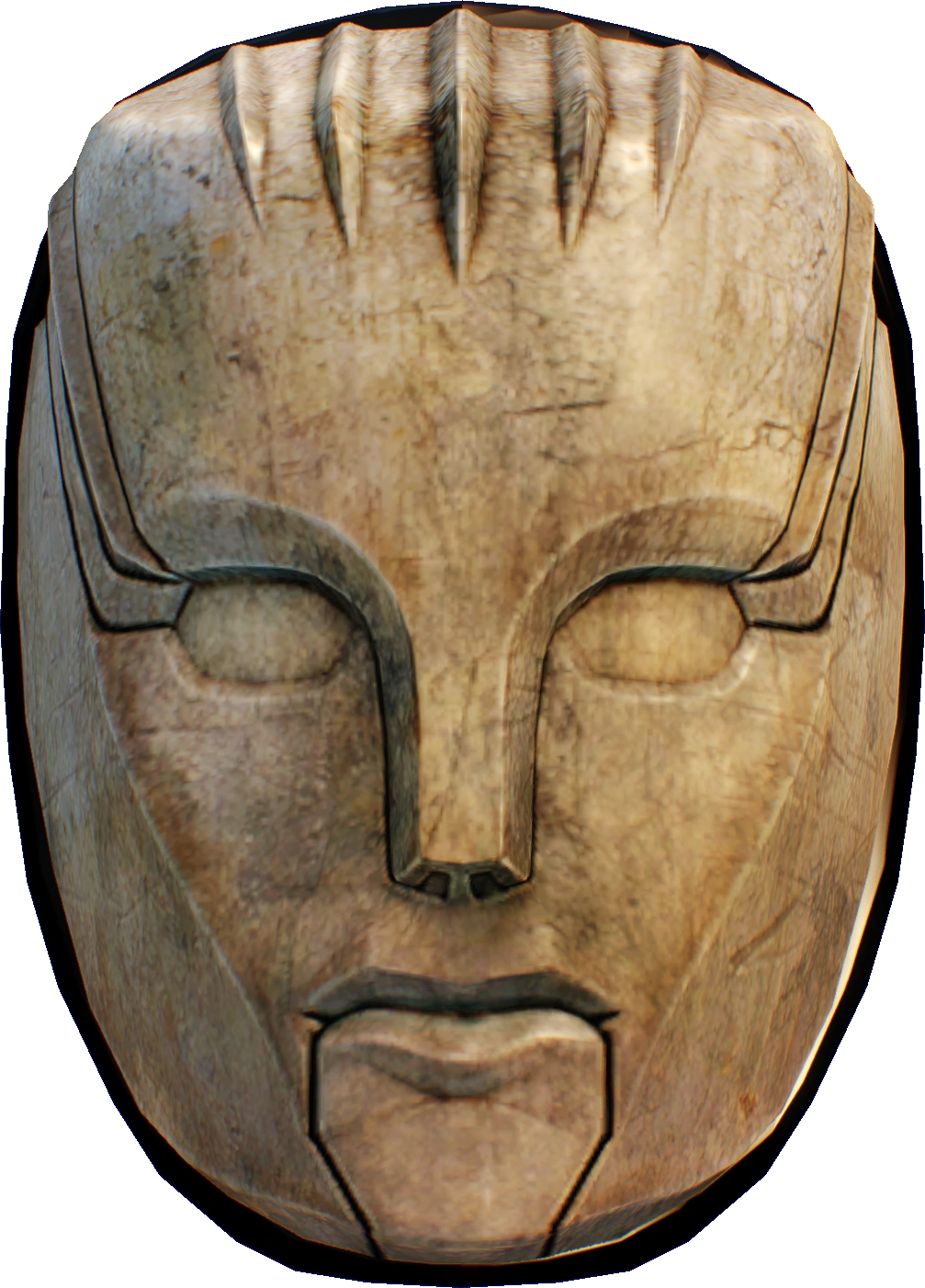 Эта маска сделана из древнего камня, с отметинами от каждого предыдущего владельца и символом, который излучает огромную силу. Как гласит надпись на краю, если кто-то встанет против носителя маски, начнется конец света.