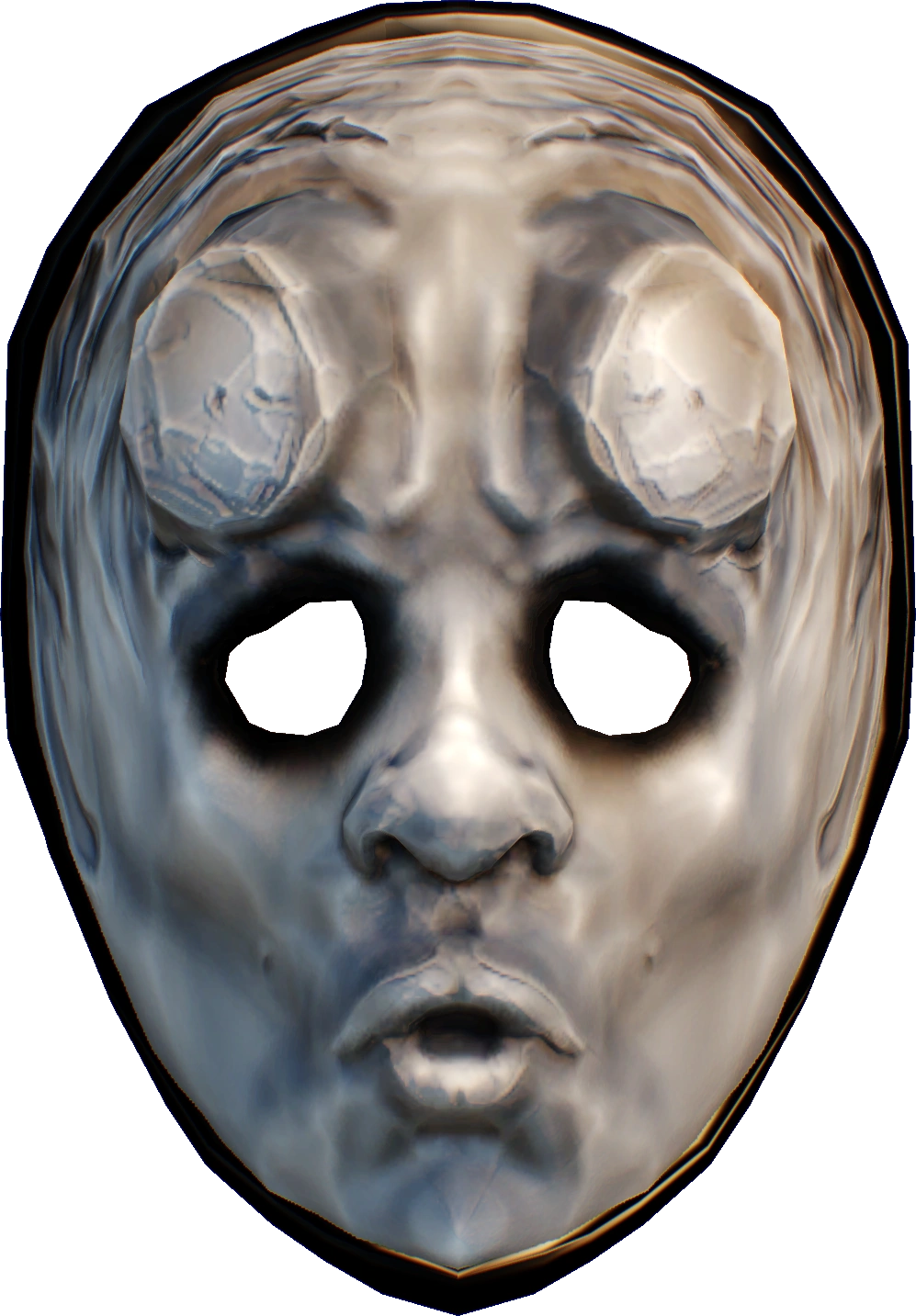 Есть мужская и женская маска, каждая с 3 вариантами (кровь, клоун, камень). Их файлы все еще имеются в игре, хотя файлы моделей требуют модификации, прежде чем их можно будет использовать.
