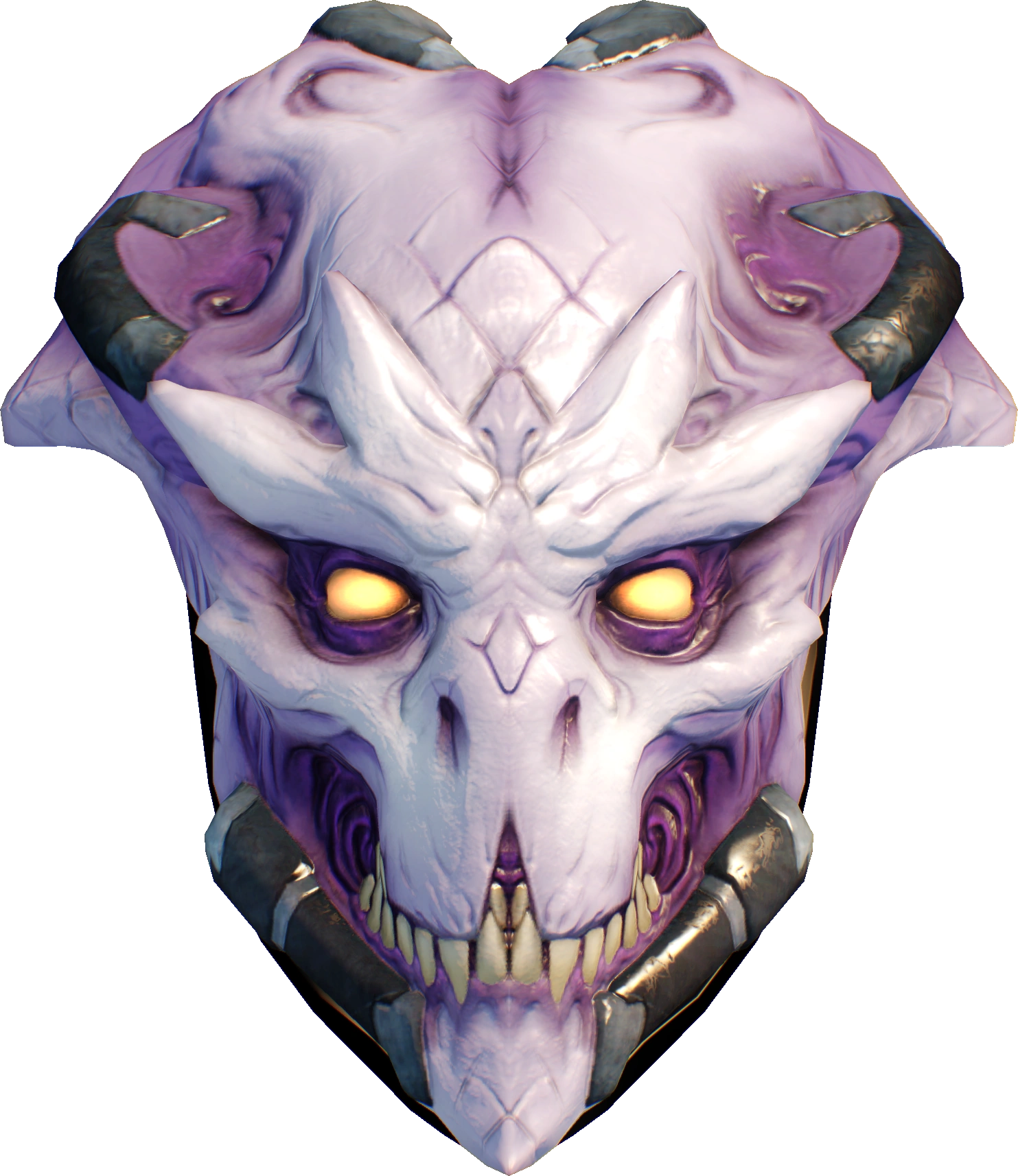 Вот и прибыл Предвестник! Странная вещь, человеческий череп. Люди часто могут распознать человеческий череп, даже если видят только его часть. В человеческом мозге даже есть специальная область, отвечающая за это. Это точно не человеческий череп, он принадлежит демону бойни.