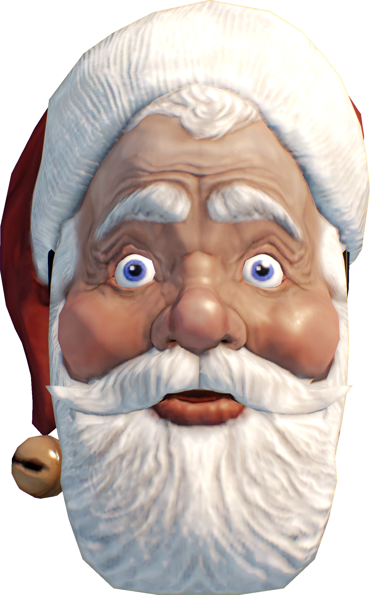 Эта маска изображает Счастливого Санту. Большая улыбка и радость на краснощеком лице. Надев ее, вы заставите улыбнуться даже самых угрюмых Бульдозеров.
