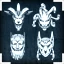 Маски являющиеся наградой за достижения. Они не могут быть получены через карточки. Их нельзя продать, но можно вернуть обратно в меню покупки. Все материалы, рисунки и цвета, использованные в результате изменения маски, при этом не будут возвращены (за исключением некоторых материалов и рисунков).