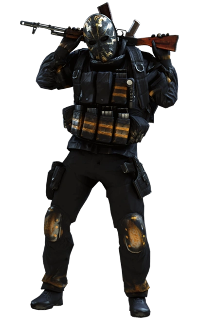 UMP для меня, UMP для тебя (ориг. UMP for Me, UMP for You) Выполняя контракт «Точка кипения» убейте 45 русских спец-юнитов, используя пистолет-пулемет Jackal на уровне сложности OVERKILL или выше. Открывает маску «Защита», материал «Туман» и рисунок «Боевые раны». |