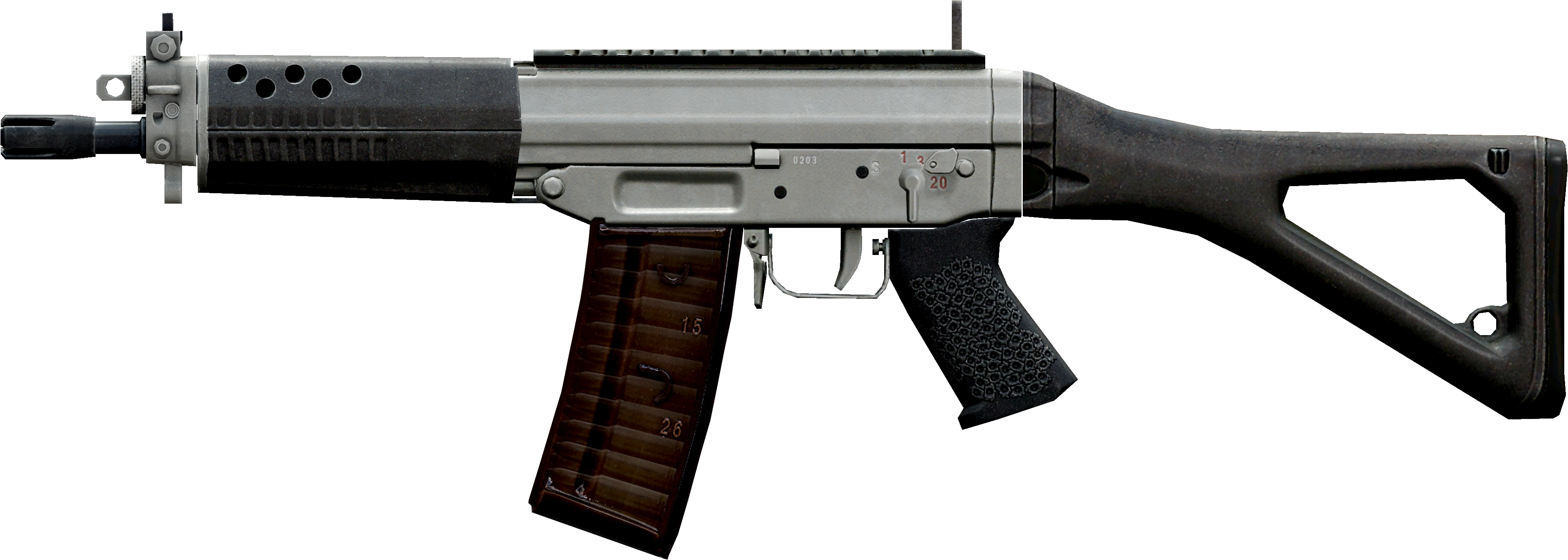 - Модель оружия основана на SIG SG 552-2 Commando. При установке длинного ствола преображается в SG 552-2 LB.