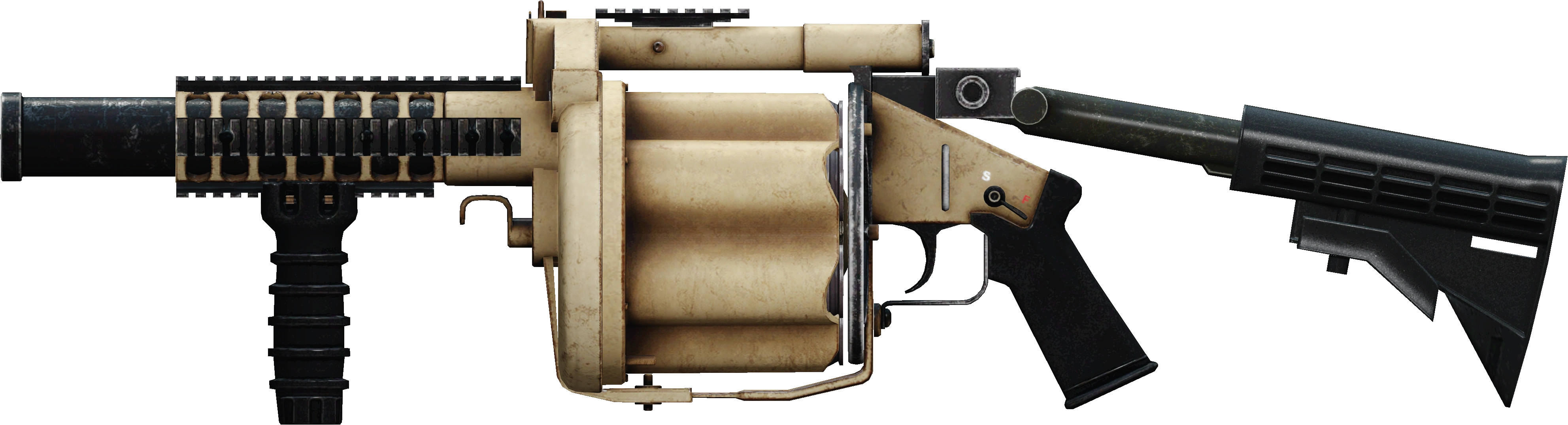 Шестизарядный гранатомет револьверного типа. По мощности равен GL40, но превосходит его размером магазина и общим количеством гранат.