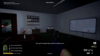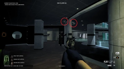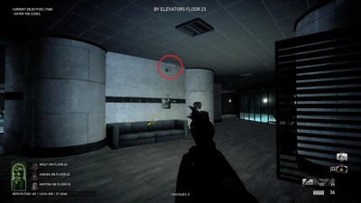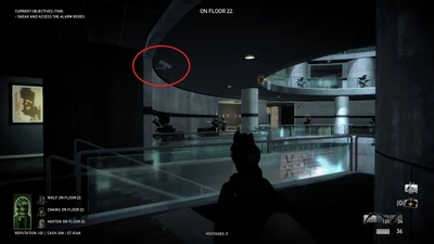 - Destroying one camera in a floor 23 meeting room near the roof stairs disables a specific shield spawn that blocks that stairway.