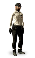 The Security Guard is the weakest enemy, usually armed only with a Crosskill .45 pistol. He has the lowest accuracy, lowest firepower and lowest endurance of all the enemies. Security guards appear in First World Bank as the bank guards, Green Bridge as the prison transport drivers, Slaughterhouse as the armored vehicle drivers and in No Mercy as the ICU guards.