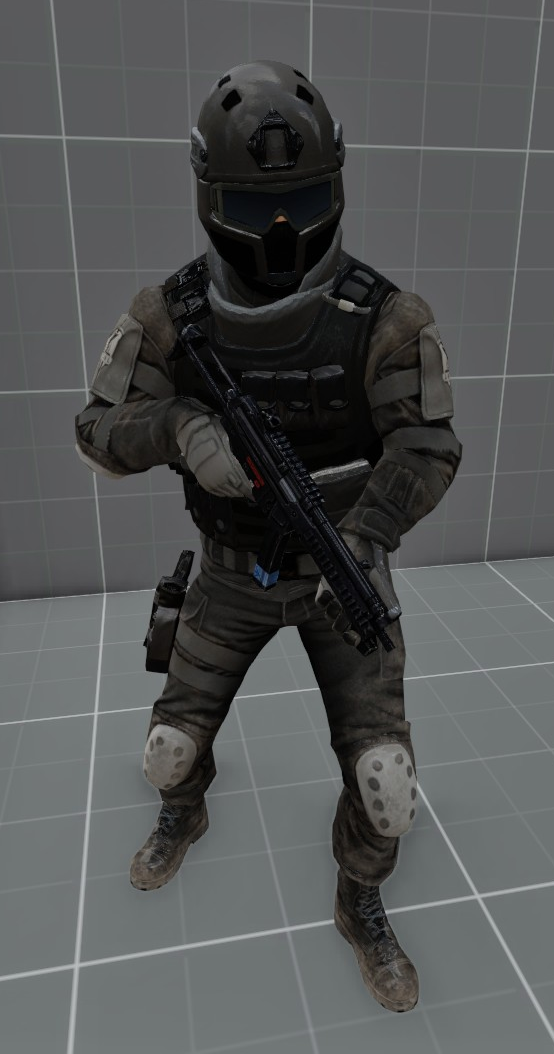 While they look identical to Murkywater Heavies, they lack their tan armour and doubled health, but have better weaponry. Some mods even tackle this by changing one of the two's texture.