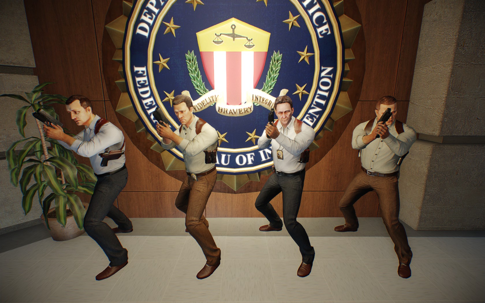 The fat man is internally calledfbi_boss, the women fbi_female, and the rest of the men fbi_office.