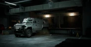 Once inside, players can enter into a stealth-exclusive section of the map, which serves as a shortcut to the staircase to the parking lot. There's a single guard present at the escape vehicle, which is a GenSec armored truck seen in Road Rage. The guard will mistake you as the driver(s) of the armored van, having unintentionally prepared it for the Payday gang's exfiltration. He will eventually leave, allowing players (both unmasked and masked on) to exit safely.