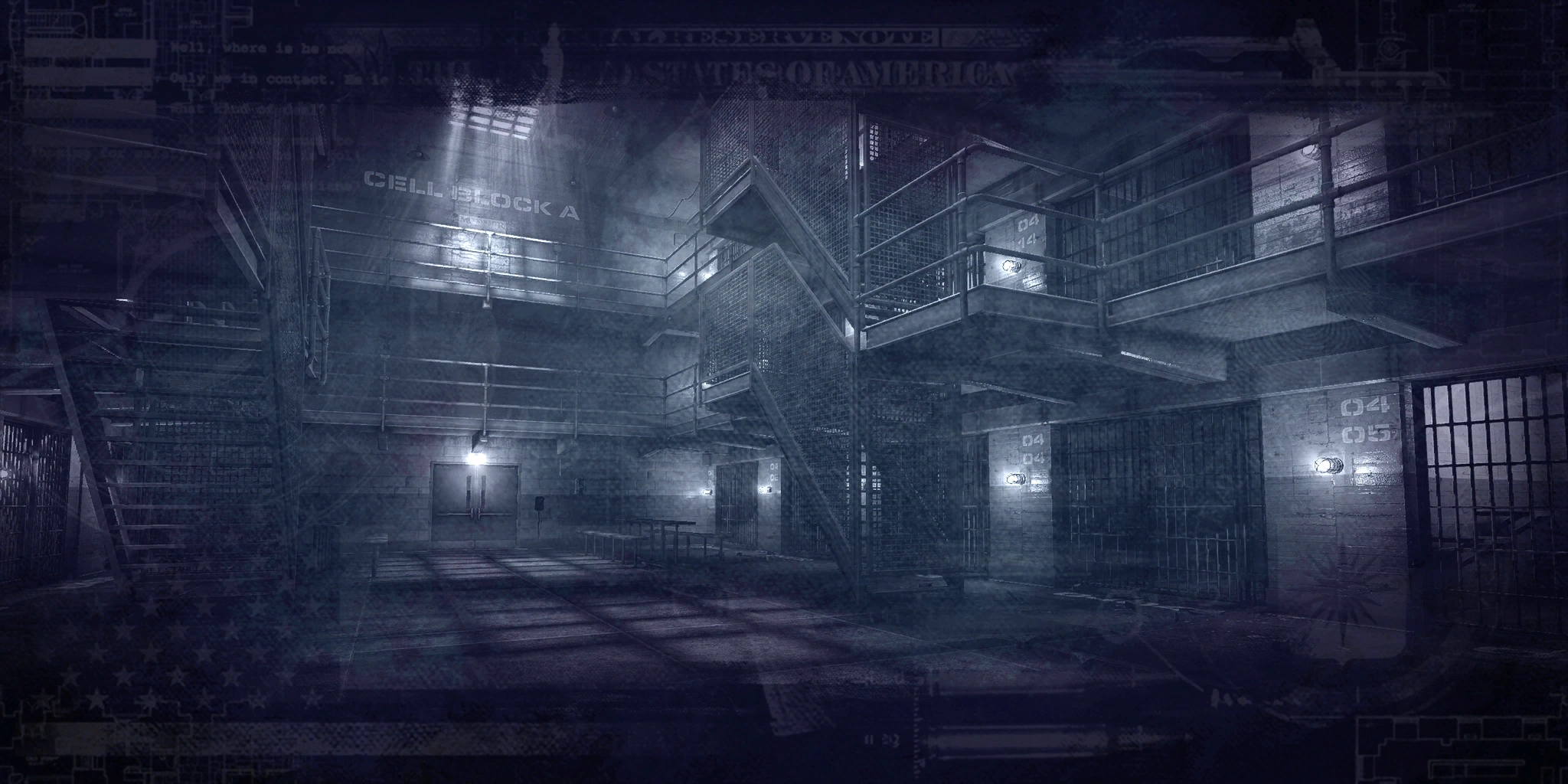 Locke will inform the crew of where he went, and the group must leave through a door to the left of the office, down a set of stairs where they will enter a room with a set of doors to their right. If it was purchased, the Ammo Bag dead drop will be found directly to the right upon entering. From here, leave through the nearby door and through the cell block.