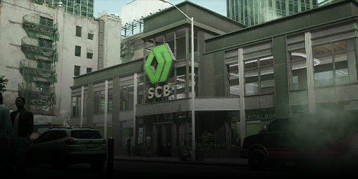 In stealth, the gang starts unmasked, out front of the bank. They must enter the bank. After doing so, Shade tells them to turn off the vault gate power. The power switch can spawn in many randomized positions, but there is a guaranteed spawn inside the teller room, which can be accessed by opening the left-side door (next to the vault).