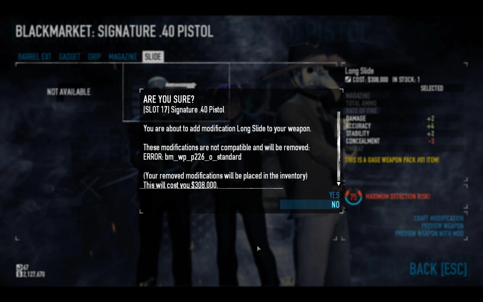 - The Signature .40 may display an attachment conflict with what appears to be the standard slide when adding the Long Slide modification. This suggests that the stock slide is an unnamed attachment that was put on the weapon by default, and that the original model might have been a variant of the P226 before being changed.