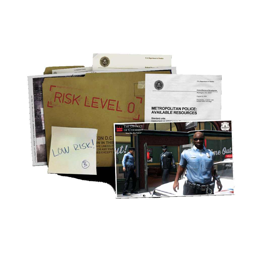 There are a large number of guards (more than 20 on Mayhem+), civilians (up to 15) and security cameras (up to 15) on the map, hence extreme caution must be taken when eliminating guards and civilians as there is often a risk of discovery and panic can rapidly spread. Fortunately, there is relatively little randomization to the guard and civilian spawns and their patrol routes, making it relatively easy to anticipate where guards will move next. Skills like High Value Target Aced and Sixth Sense can also be rather useful.